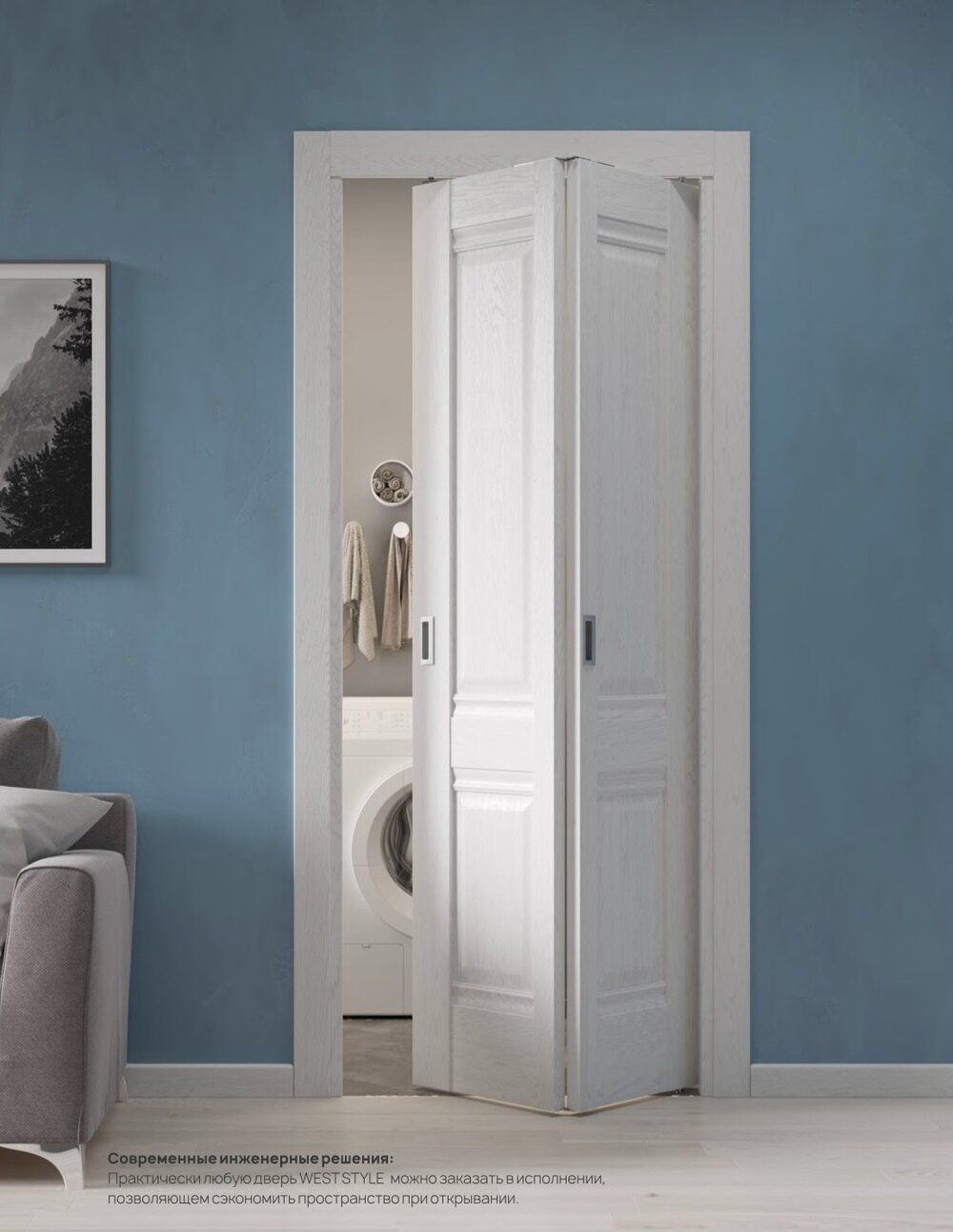 • Полотно-книжку можно установить в тесных помещениях, узких проемах или комнатах с нестандартной планировкой.