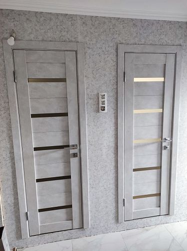 Дверь ПО Relief 1 Бетон лайт стекло графит из Экошпона COVERFLEX (Двери Нева) в с установкой и доставкой
