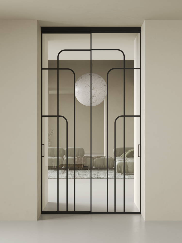 Купить дверь Diva 1 черная стекло осветленное с аркой 3 в с установкой и доставкой