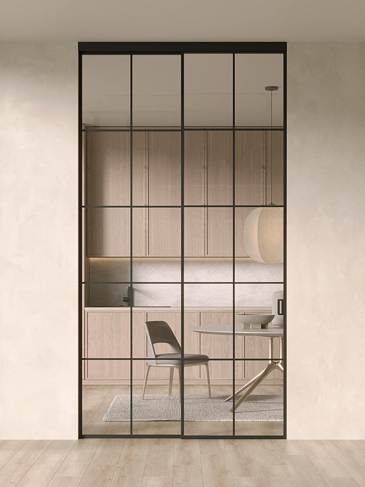 Купить дверь MinoLite-S 4 черная стекло прозрачное в с установкой и доставкой